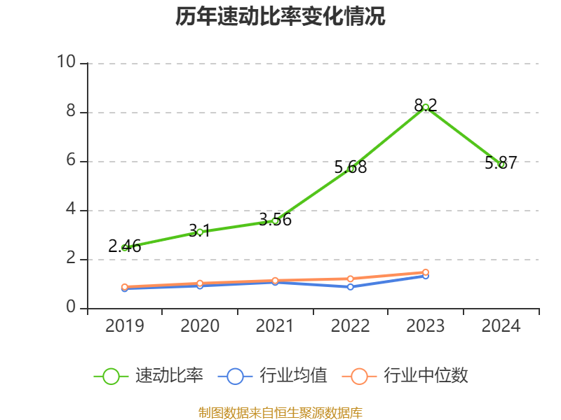 2024年,公司流动比率为8.83,速动比率为5.87。