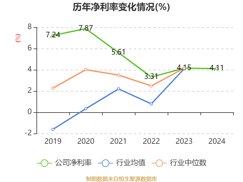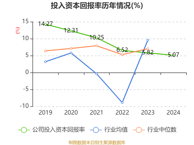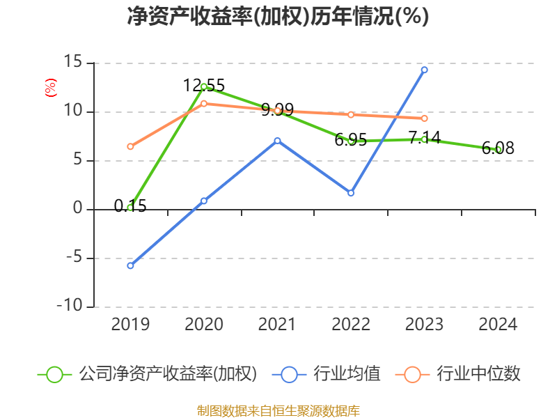 数据显示,2024年公司加权平均净资产收益率为6.08%,较上年同期下降1.06个百分点。公司2024年投入资本回报率为5.07%,较上年同期下降0.75个百分点。