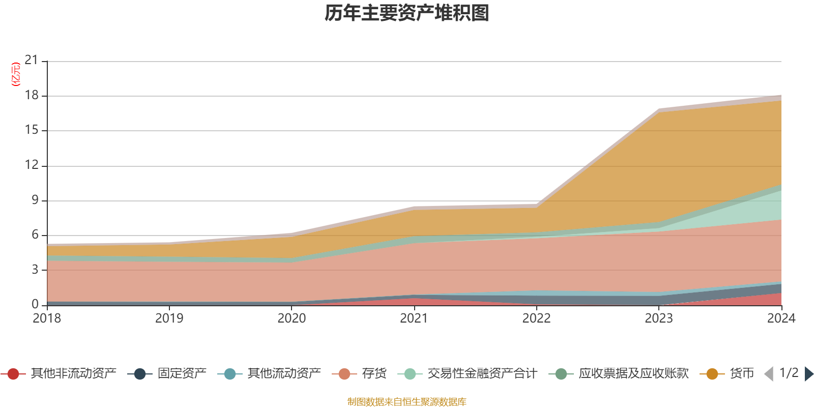 资产重大变化方面,截至2024年末,公司货币资金较上年末减少23.59%,占公司总资产比重下降15.94个百分点;交易性金融资产合计较上年末增加733.33%,占公司总资产比重上升12.05个百分点;其他非流动资产占公司总资产的5.81%,上年末为0;存货较上年末增加2.48%,占公司总资产比重下降1.29个百分点。