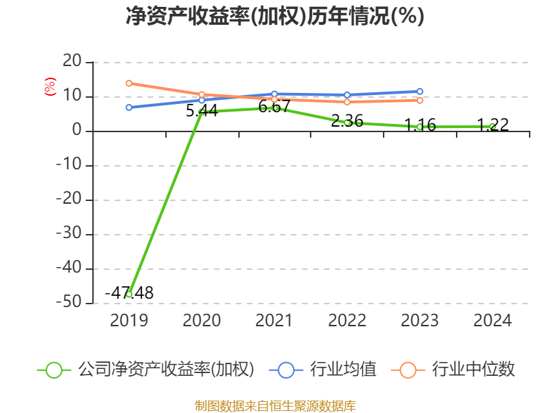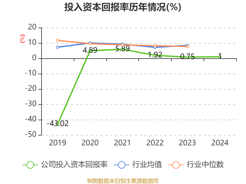数据显示,2024年公司加权平均净资产收益率为1.22%,较上年同期上升0.06个百分点。公司2024年投入资本回报率为1%,较上年同期上升0.25个百分点。