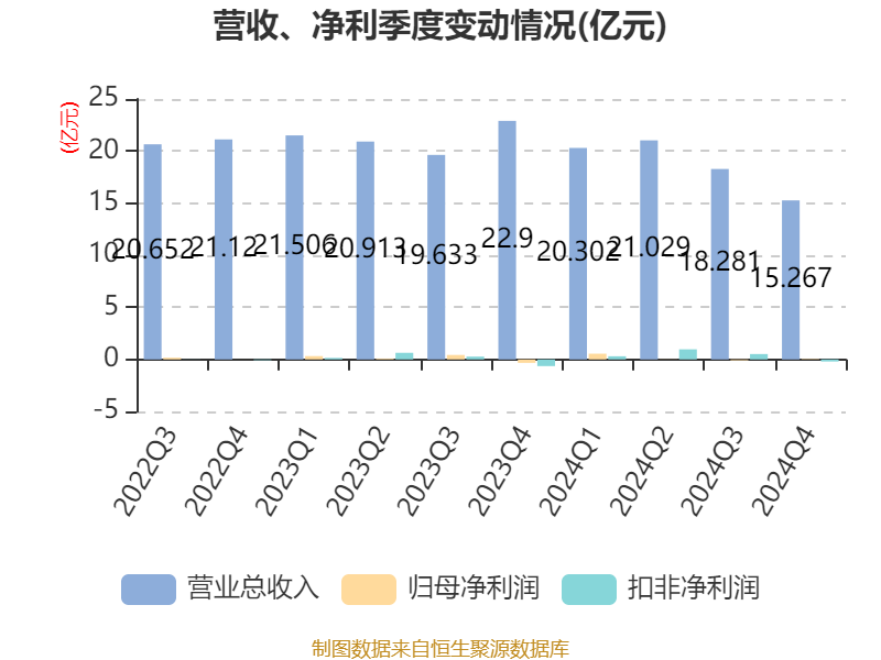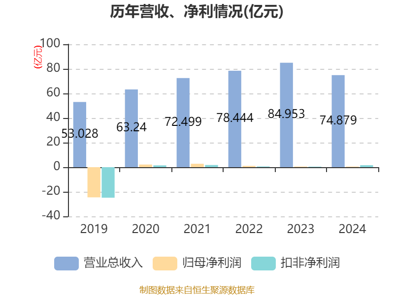 中证智能财讯海联金汇(002537)4月26日披露2024年年度报告。2024年,公司实现营业总收入74.88亿元,同比下降11.86%;归母净利润4917.1万元,同比下降3.48%;扣非净利润1.59亿元,同比增长283.07%;经营活动产生的现金流量净额为-1.21亿元,上年同期为2.95亿元;报告期内,海联金汇基本每股收益为0.04元,加权平均净资产收益率为1.22%。