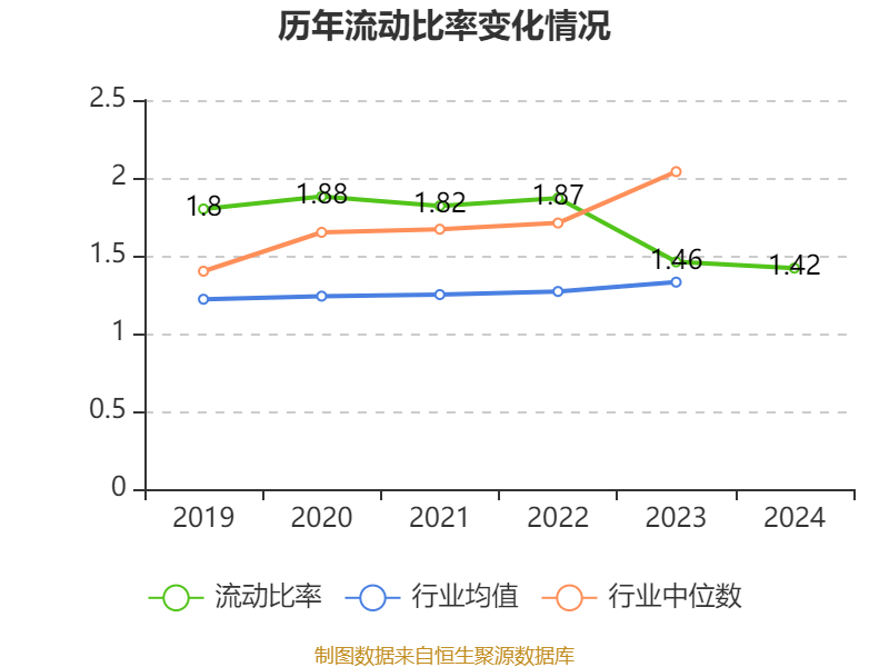 2024年,公司流动比率为1.42,速动比率为1.17。